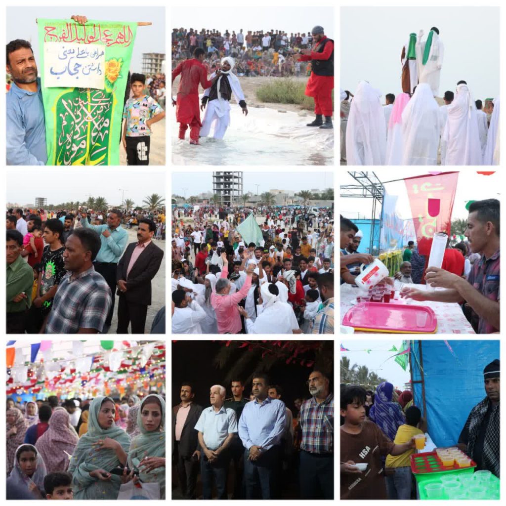 در این برنامه هنرمندان مطرح شهرستان قشم جهت بازسازی واقعه غدیرخم به اجرای نمایش این واقعه پرداختند که در آخر مواکب و ایستگاه های صلواتی جهت پذیرایی از مردم در نظر گرفته شده بود که مردم شرکت کننده در این مراسم از این مواکب استفاده نمودند.