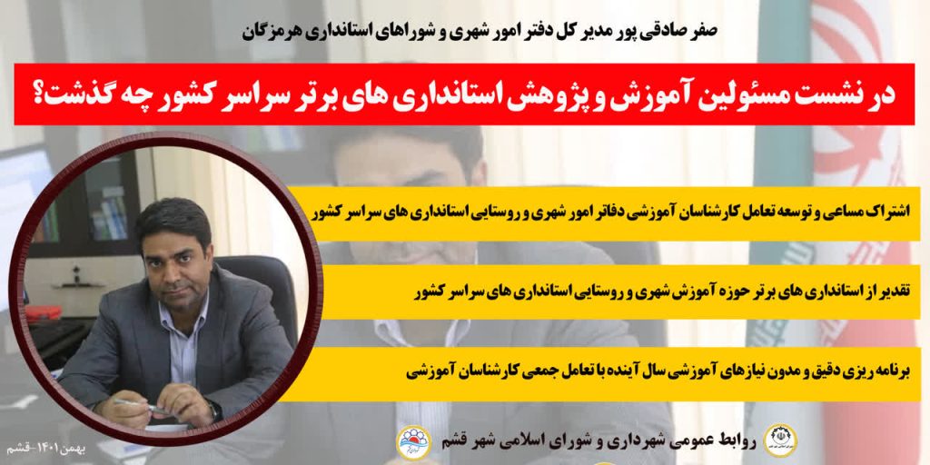 مدیرکل امور شهری و شوراهای استانداری هرمزگان؛ در نشست مسئولین آموزش و پژوهش استانداری های برتر سراسر کشور چه گذشت؟