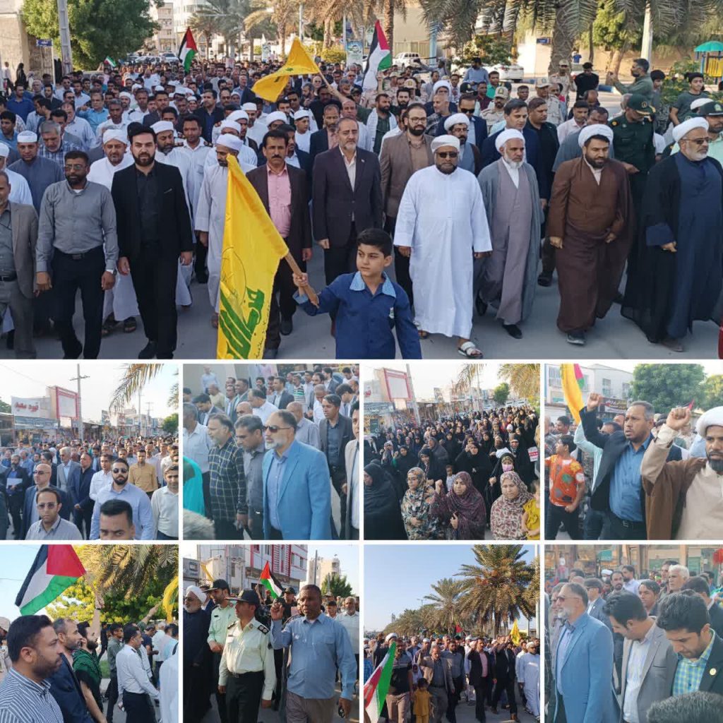 مردم شیعه و اهل سنت جزیره قشم در حمایت از كودكان مظلوم غزه و مردم بی دفاع فلسطین، و محکومیت رژیم کودک کش صهیونیستی همزمان با سراسر کشور راهپیمایی کردند.