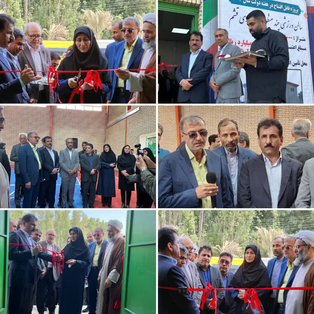 به گزارش روابط عمومی شهرداری و شورای اسلامی شهر قشم، سالن ورزشی چند منظوره زنده یاد حاج حبیب بازماندگان قشمی با حضور معاون امور عمرانی استانداری هرمزگان، نماینده مردم هرمزگان در مجلس شورای اسلامی، فرماندار شهرستان قشم، امام جمعه شهرستان، شهردار و اعضای شورای اسلامی شهر قشم، جمعی از شهروندان و مسئولین استانی و شهرستانی به بهره‌برداری رسید. این سالن ورزشی بخشی از سایت مشارکتی شهرداری و سازمان منطقه آزاد قشم به وسعت پنج هزار و ۶۰۰ مترمربع، ویژه محلات هدف بازآفرینی شهری قشم شامل پایگاه سلامت به مساحت ۶۵۰ مترمربع، سالن ورزشی چند منظوره به مساحت ۱۱۰۰ مترمربع، زورخانه به مساحت ۷۰۰ مترمربع، فضای بازی کودکان به مساحت ۳۱۰ مترمربع، پارکینگ به مساحت ۴۰۰ مترمربع، زمین والیبال به مساحت ۲۰۰ مترمربع، فضای سبز به مساحت ۵۵۱ مترمربع و پیاده رو به مساحت ۱۴۱۸ مترمربع است. امروز به مناسبت هفته دولت با حضور مقامات استانی و شهرستانی سه پروژه شاخص شهرداری قشم شامل پارک خطی لاله و سالن ورزشی چندمنظوره زنده یاد حاج حبیب بازماندگان قشمی بهره برداری و عملیات اجرایی احداث زمین ورزشی شهرک نریمان آغاز خواهد شد که مجموع اعتبار این طرح‌ها ۷۷۰ میلیارد است.