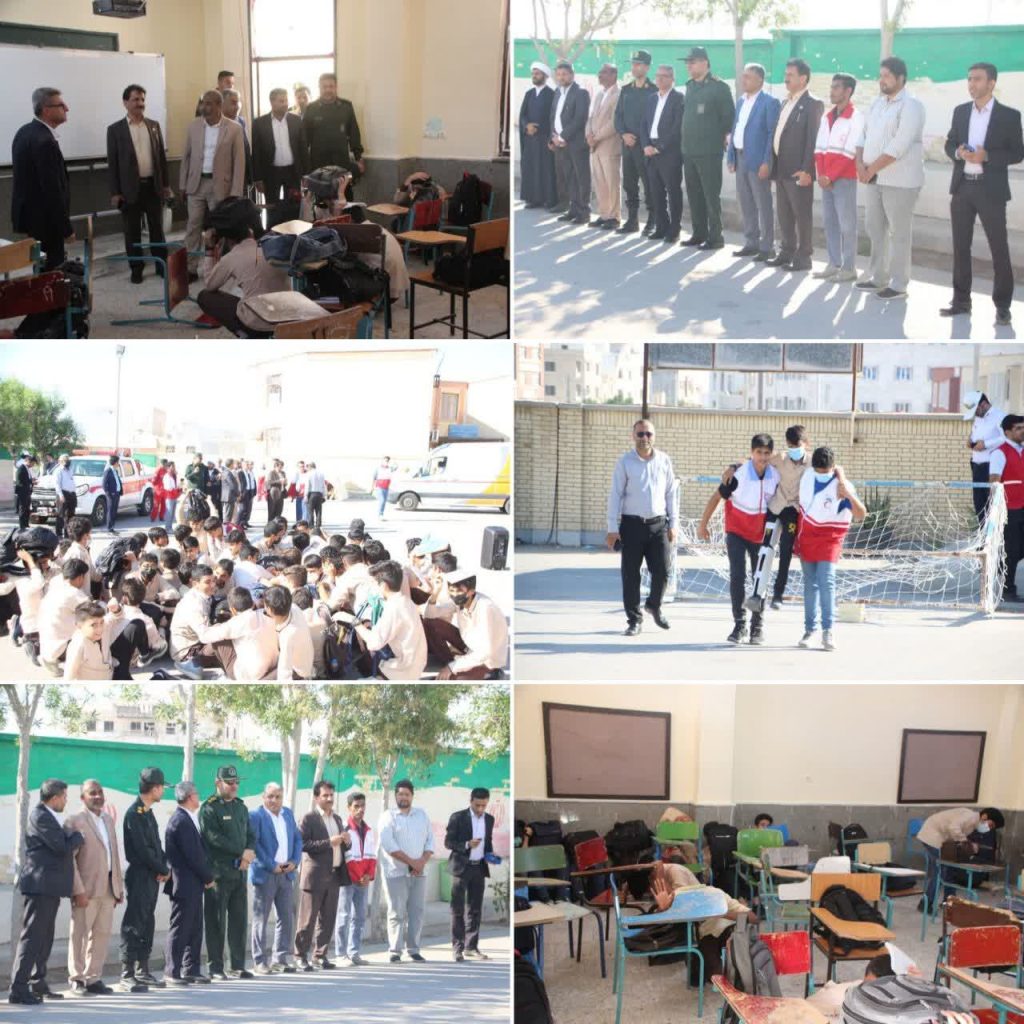 مانور زلزله با حضور دکتر میرداد میردادی شهردار قشم و جمعی از مسوولان در مدرسه دکتر حسابی این شهر برگزار شد.
