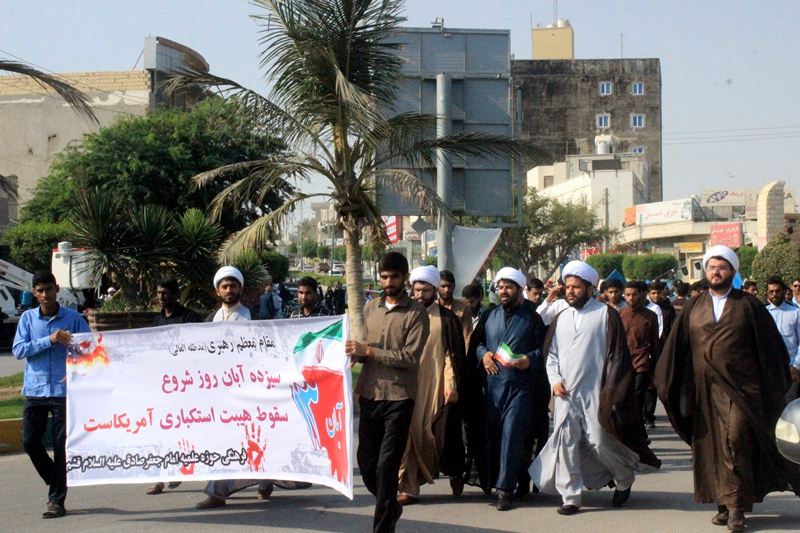 مسطوری ضمن گرامیداشت ۱۳ آبان و روزملی مبارزه با استکبار جهانی ، از حضور گسترده و پرشور شهروندان قشمی در راهپیمایی این روز تقدیر و تشکر کرد و افزود : شهروندان عزیز و غیور قشمی با حضور گسترده خود در مراسم راهپیمایی یوم الله سیزده آبان ماه ، وفاداری خود را به نظام مقدس جمهوری اسلامی و رهبر معظم انقلاب امام خامنه ای نشان دادند و ثابت کردند که پشتیبان نظام هستند.