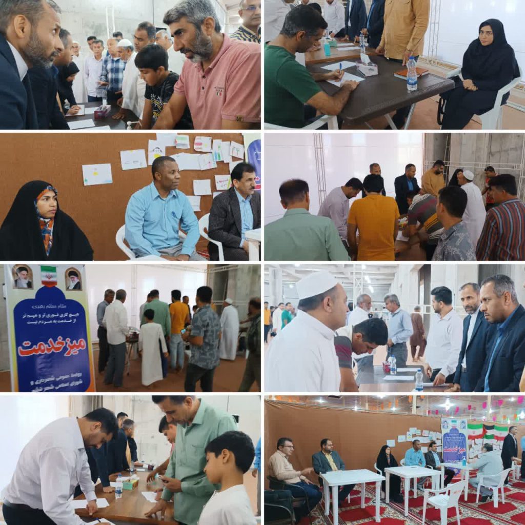 پیرو اطلاع رسانی قبلی، میز خدمت شهرداری قشم با حضور دکتر احمد شب‌تاریانی، مهندس مریم خادمی و بی‌بی‌مریم پیرزنده از اعضای شورای اسلامی شهر قشم، دکتر میرداد میردادی شهردار قشم و جمعی از مسوولان و کارکنان شهرداری در دو مصلی اقامه نماز جمعه شیعه و اهل سنت برپا شد.