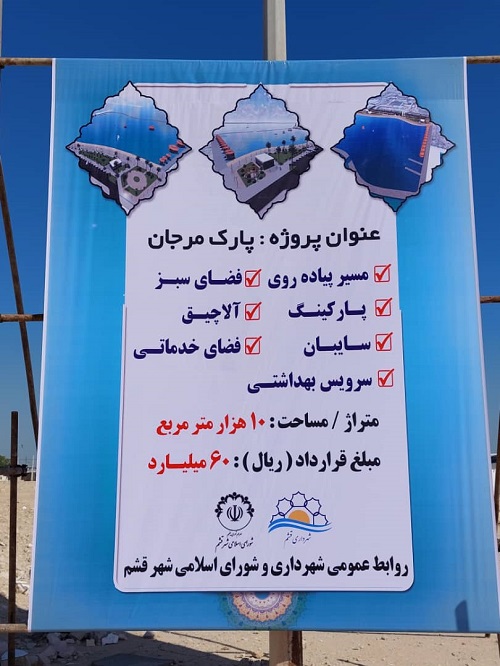 مراسم کلنگ زنی پارک مرجان در محدوده ساحل شرقی با حضور مدیر کل حراست استانداری و مسئولین شهرستان برگزار گردید.این پروژه به مساحت ۱۰هزار متر مربع با اعتبار ۶۰میلیارد ریال دارای مسیر پیاده روی، فضای سبز، پارکینگ، آلاچیق، سایبان، فضای خدماتی و سرویس بهداشتی می باشد.
