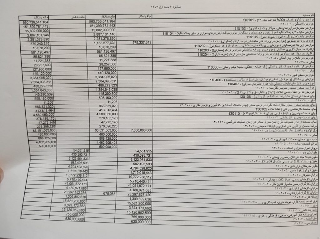 گزارش عملکرد مالی شهرداری قشم ۶ ماهه اول ۱۴۰۳